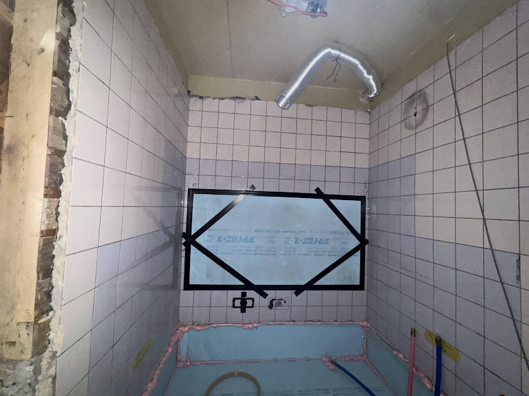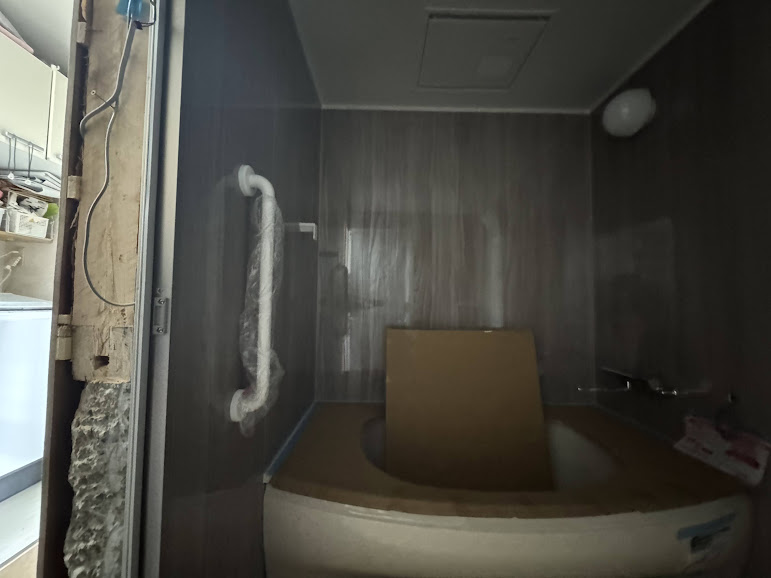 既存の浴室より小さくすることで、壁のはつりが少なく窓も撤去なくそのまま,ふさぐことによりコストダウン、床と天井に断熱材を入れてもらい、とても暖かい浴室になり快適です。